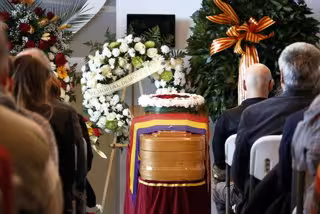 La bandera republicana i un pom de roses blanques cobreixen el fretre de la lluitadora antifeixista