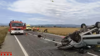 Deltebre.-Dues persones han resultat ferides en un xoc frontal entre dos vehicles aquest dissabte a la T-340, al punt quilmetre 4.9, del terme municipal de Deltebre (Baix Ebre). En el sinistre, un dels turismes ha bolcat a la via mentre que l'altre ha caigut a un arrossar. Els ferits, un de greu i un altre de menys gravetat, s'han evacuat a l'Hospital Verge de la Cinta de Tortosa. Els bombers han rebut l'avís a les 13.07h i s'han desplaat fins al lloc dels fets cinc dotacions del cos, dues ambulncies del SEM i un helicpter.