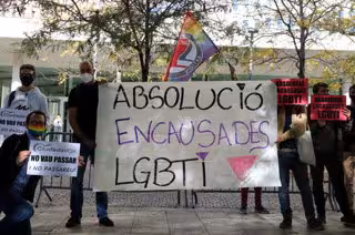 Barcelona.-La fiscalia ha demanat aquest dimarts una multa de 540 euros a cadascun dels quatre activistes LGTBI acusats de coaccions lleus amb motivació ideolgica per impedir l'accés d'un autobús de Cs a la manifestació de l'Orgull Gai de Barcelona el juny del 2019. En el judici, el ministeri públic i l'acusació, exercida per un representant del partit taronja, han considerat que els quatre activistes formaven part de la trentena de persones que van rodejar el vehicle, el van pintar amb lemes com 'fora feixistes', van trencar-li algun llum i van cridar "us cremarem l'autobús". L'advocat de Cs ha demanat també 1.080 euros per a un dels quatre acusats per amenaces, i 250 euros d'indemnització als tres militants de dins del vehicle per danys morals.