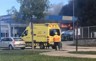 Olot.-Un incendi en una fusteria d'Olot amenaa una benzinera situada just al costat. El foc s'ha declarat pels volts de dos quarts de tres de la tarda i ha cremat rpidament. Com a conseqüncia de l'incendi, s'ha esfondrat la primera planta del negoci que ha quedat totalment calcinada. El problema és que just al costat hi ha una benzinera i els Bombers treballen per evitar que el foc pugui afectar uns dipsits de gasoil que es troben propers a la zona on hi ha les flames. Fins al lloc dels fets s'hi ha desplaat nou dotacions dels Bombers que treballen per apagar l'incendi. De moment, no hi ha coneixement que hi hagi persones ferides.