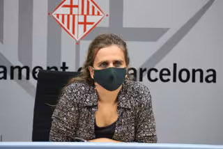 Pla mitj de la regidora de Salut, Envelliment i Cures de l'Ajuntament de Barcelona, Gemma Tarafa, en roda de premsa. 16 d'octubre del 2020. (Horitzontal) - Mariona Puig (ACN)