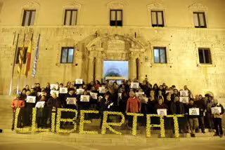 Prop dun centenar de persones es concentren davant lAjuntament per denunciar la repressió judicial