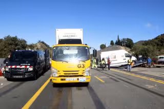 Hi ha alguns camions que no han reculat i esperen per avanar un cop es netegi la via i es reobri el trnsit