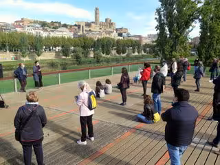 Lleida.-Una vuitantena de persones han participat aquest dissabte al matí a la 6a edició de l'Arquitectour, que enguany ha donat l'oportunitat de conixer la canalització del riu Segre a Lleida a través d'una visita guiada per les tres passarelles que el travessen. La iniciativa est organitzada per la Demarcació de Lleida del Collegi d'Arquitectes de Catalunya en motiu del Dia Mundial de l'Arquitectura, que enguany té lloc el proper dilluns dia 5 d'octubre. L'activitat d'aquest any s'ha fet a l'aire lliure i els participants s'han dividit en dos grups de quaranta persones per garantir les mesures de seguretat derivades de la pandmia.