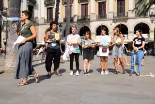 Els Joves de la UGT organitzen una 'venda d'esclaus' simblica a la plaa Reial per denunciar les precries condicions laborals dels joves