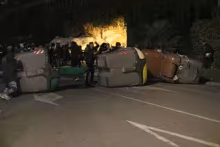 Barcelona.-Escenes de caos i enfrontaments entre barricades de foc a Barcelona, Girona, Lleida, Tarragona i Manresa en la tercera nit de protestes a Catalunya contra la sentncia del Suprem. A la capital catalana han cremat diversos cotxes, arbres i mobiliari urb, i la policia espanyola i els Mossos han carregat amb porres i han llanat projectils de foam i pilotes de goma. Segons fonts policials, un grup de violents ha atacat amb almenys cinc artefactes pirotcnics l'helicpter dels Mossos, que també han patit llanaments d'cid, pedres i altres objectes. Per ara, hi ha almenys un detingut per desordres públics i una desena d'atesos pel SEM. L'ACN ha pogut veure un home ests a terra després de ser aparentment atropellat per una furgoneta policial.