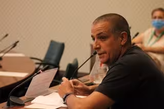 Primer pla del representant de la Federació d'Associacions Venals de Tarragona (FAVT), Justo Velilla, durant la compareixena a la comissió d'estudi de la seguretat de la petroquímica al Parlament, el 22 de setembre del 2020. (Horitzontal) - Parlament de Catalunya (ACN)