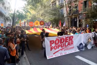 Barcelona.-Uns pocs milers de persones s'han manifestat aquest Onze de Setembre a la tarda pel centre de Barcelona convocades per l'esquerra independentista amb el lema 'Organitzem el poder popular. Cap a la independncia no hi ha dreceres', reivindicant l'organització de les bases independentistes per aconseguir la secessió de forma efectiva mitjanant la desobedincia. A més, han reivindicat una societat feminista, ecologista, socialista i anticapitalista. Els manifestants han sortit poc abans de les 7 de la tarda de la plaa Urquinaona, han passat pel carrer Trafalgar, el passeig Lluís Companys i el carrer Comer, per acabar davant del Mercat del Born, on s'ha fet l'acte polític.