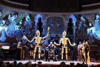 Carles Marigó i Jordi Castell, com a piano solistes; Phax, ballarí d'slow dance'; Eudald Ferré i Arnau Colom, titelles, i Lluc Fruitós a la direcció artística, són alguns dels protagonistes d'un 'Carnaval dels animals' ben diferent. El carcter de cada animal que apareix a l'obra original s'ha pogut percebre a través de les interpretacions dels protagonistes, que han transms a través de moviments, i menys paraules, l'essncia de l'obra de Saint-Sans.El 'Carnaval dels animals' va ser escrita com a divertiment el 1886, durant les vacances del compositor en un poblet d'ustria, i malgrat es considera que va ser poc ambiciosa, es va convertir en una de les obres més populars del compositor francs. Exceptuant 'El cigne', que Anna Pavlova va adaptar per al seu ballet, aquesta gran fantasia zoolgica no va ser interpretada mai en públic en vida del compositor, tret de l'estrena per a un restringit grup damics. En 14 capítols, l'obra satiritza de manera simptica la variada fauna musical, des compositors com Berlioz (elefant) o Offenbach (tortugues), passant per Rossini i el mateix Saint-Sans (fssils). Els pianistes són "animals per se", i els crítics musicals són l'ase. En la versió que ha acollit aquest dissabte el Palau de la Música hi han transitat elefants, cangurs, ases salvatges, ocells i tortugues.La companyia Brodas Bros va néixer el 2006 a partir de dues parelles de germans, Pol i Lluc Fruitós i Berta i Clara Pons, i des d'aleshores ha portat els seus espectacles tant de teatre com de carrer a escala internacional.