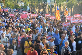 Sabadell.-Manifestació multitudinria a Sabadell per demanar l'alliberament dels set activistes del CDR empresonats des del dijous 26 de setembre. Els nombrosos participants s'han concentrat prop de les sis de la tarda davant els jutjats de la ciutat i han comenat la marxa entre crits de 'Tots som CDR' i 'No esteu soles'. La manifestació ha estat encapalada per familiars i amics de les persones en presó preventiva, que han portat una pancarta amb el lema 'La repressió no ens aturar. Llibertat'. La reivindicació ha estat impulsada pel la plataforma de suport 'Llibertat Detingudes 23S' després que el jutge de l'Audincia Nacional decretés dijous presó provisional sense fiana per a set de les persones detingudes, que estan acusades de terrorisme.