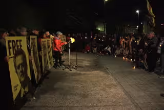 Puigcerd.-Més de 200 persones s'han concentrat aquest dimarts a les vuit del vespre davant dels jutjats de Puigcerd per mostrar el seu rebuig a la sentncia de l'1-O. L'acte, convocat per l'ANC i mnium, ha arrencat duent a terme cinc minuts de silenci i ha continuat amb la lectura de diverses cartes escrites pels presos independentistes el mateix dia en qu el Tribunal Suprem donava a conixer la resolució del judici al procés. Durant tota la mobilització, els assistents anaven amb una espelma a la m i, per acabar, han cantat l'Himne Nacional de Catalunya. Finalment, els castellers de Cerdanya han aixecat un pilar i han desplegat una pancarta on s'hi podia llegir "Llibertat presos polítics".