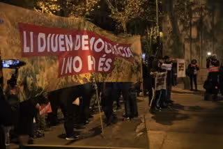 Els manifestants criden consignes contra el líder del PSOE i porten pancartes amb lemes com 'Li diuen democrcia i no ho és'