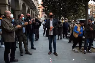 Pla obert de l'alcalde de Manlleu, lex Garrido, durant la concentració de suport. 5 d'octubre de 2020. (Horitzontal) - Mar Martí (ACN)
