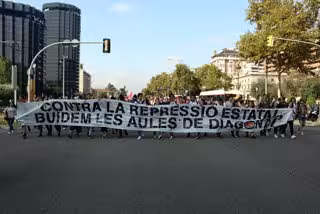 Barcelona.-Milers d'estudiants s'han manifestat aquest dilluns al matí pel centre de Barcelona per mostrar el rebuig a la sentncia del Tribunal Suprem de l'1-O. La marxa ha comenat a Palau Reial on, tan bon punt s'han conegut les condemnes, els universitaris han tallat la Diagonal. Durant prop d'una hora s'han mantingut a la calada i cap a les onze han sortit en manifestació. Crits de 'llibertat presos polítics', 'contra la sentncia, independncia' o '1 d'octubre, ni oblit ni perdó', la marxa ha anat avanant i ha anat sumant manifestants, com un grup de treballadors de l'Agncia de Residus de Catalunya, o del Departament d'Educació. Els estudiants han anat fins al carrer Balmes, han envat el carrer Rosselló i han acabat al passeig de Grcia per confluir amb les diferents columnes universitries a la plaa Catalunya.