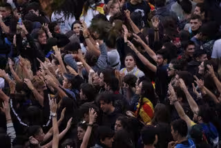 Barcelona.-Milers de persones es concentren aquest vespre a la Gran Via de Barcelona, a la cantonada amb Marina, en una nova jornada de protestes contra la sentncia del Tribunal Suprem. La mobilització, convocada pels CDRs, és també en contra de les actuacions policials durant les manifestacions dels últims dies i, de fet, el lema és 'Que se'n vagin!', en referncia als agents de la Policia Nacional i la Gurdia Civil arribats a Catalunya per reforar el dispositiu de seguretat als carrers. La policia ha reforat la seguretat als voltants de la conselleria d'Interior. De moment, l'ambient a la concentració és tranquil, i els participants canten consignes a favor dels presos i la independncia.