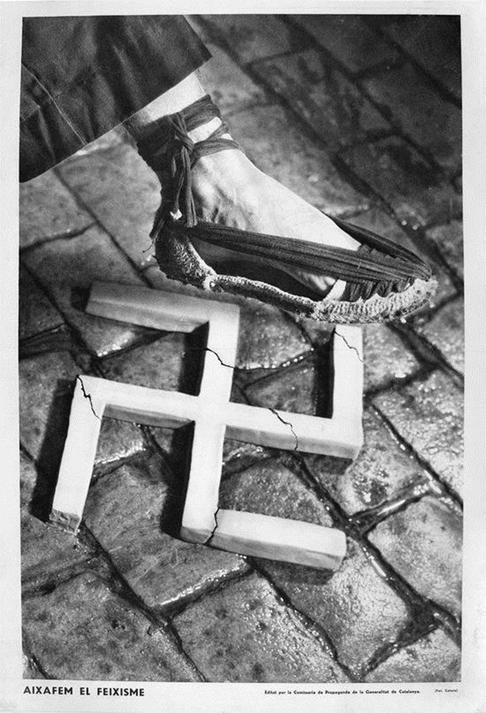 El Comissariat de Propaganda, un organisme que es va crear loctubre de 1936, va desplegar una estratgia comunicativa dampli abast. Va treballar per internacionalitzar el conflicte bllic i alhora explicar-se davant lopinió pública republicana catalana i espanyola. Durant la Guerra Civil la propaganda va tenir un paper fonamental degut al carcter ideolgic del conflicte. Com ha explicat el Palau Robert, "en els dos bndols es van organitzar aparells persuasius per difondre la seva versió dels fets tant en l'mbit domstic com en el terreny internacional". Lexposició no només reconstrueix i difon les accions persuasives que va portar a terme la Generalitat durant el conflicte bllic, sinó que també les contextualitza i nexplica els motius.La mostra també vol homenatjar i dignificar la figura de Jaume Miravitlles i la dels centenars de persones que van treballar o collaborar amb el Comissariat de Propaganda i que a causa de la victria franquista van caure en loblit o no van ser prou reconegudes. El polític i periodista Jaume Miravitlles es va adonar de la necessitat que la Generalitat disposés dun servei de propaganda oficial per evitar que la veu institucional del govern catal no quedés sepultada entre la propaganda franquista i la del govern de la República.El títol de lexposició fa referncia al cartell més popular que va editar el Comissariat de Propaganda i un dels més famosos de la Guerra Civil, el del fotgraf publicitari Pere Catal Pic, on es mostra una espardenya esclafant una creu gammada. Algunes de les curiositats que es poden trobar a lexposició són lesborrany duna carta de Salvador Dalí adreada al seu amic dinfantesa Jaume Miravitlles en qu sofereix a treballar en un encrrec molt particular; el cartell de lúltima Diada legal que se celebra a Catalunya fins a la Transició, o unes illustracions originals dels treballadors del Comissariat que Lola Anglada va traar.Al llarg de lexposició també es pot sentir la canó 'El més petit de tots', que ha recuperat el grup Nainonain, inspirada en lestatueta homnima que va crear el Comissariat de Propaganda i que es va considerar "la mascota de la Revolució".BlocsEl relat expositiu sestructura en quatre apartats. El primer bloc no arrenca amb la Guerra Civil, sinó que es remunta uns anys enrere, a principis de segle XX, i apunta la importncia del desenvolupament de la publicitat a Catalunya i com les tcniques i el coneixement daquesta es van incorporar a la propaganda en esclatar el conflicte bllic.La mostra segueix amb la posada en marxa del Comissariat de Propaganda, loctubre de 1936. Des daquell moment i durant uns mesos viu un període desplendor durant el qual es consolida. El tercer bloc comena amb els anomenats Fets de Maig de 1937, una lluita armada pel poder a la rereguarda catalana entre els diferents partits i sindicats. El darrer tram de lexposició comena quan les tropes franquistes trepitgen Catalunya i ocupen la primera capital catalana (Lleida), labril de 1938.