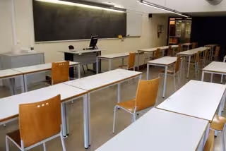 Pla mitj on es pot veure una aula de l'Escola Politcnica de la UdL buida perqu els alumnes estan impartint la matria de forma telemtica per la situació pandmica per la covid-19, el 15 d'octubre de 2020. (Horitzontal) - Oriol Bosch (ACN)