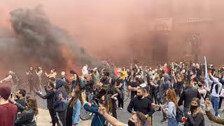 Barcelona.-El sector de la restauració s'ha tornat a concentrar aquest dimecres a la plaa Sant Jaume de Barcelona per protestar contra el tancament dels bars i restaurants. Passades les dues del migdia, prop de 500 persones, segons dades de la Gurdia Urbana, s'han aplegat davant la Generalitat amb pancartes com 'Botellon no és oci nocturn' o 'Aforament de la restauració: 0%. Aforament del transport públic: 120%'. Durant prop de cinc minuts, alguns dels manifestants s'han posat mascares d'Anonymus, han encs pots de fum negre i vermell, han tirat petards i han llanat ous contra la faana de la Generalitat. Tres quarts d'hora després de l'inici, els manifestants s'han dispersat i la desena de furgons antidisturbis també han marxat.