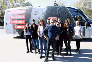 El vehicle porta retolades les paraules 'antifeixisme', 'feminisme', 'diversitat' i 'orgull'