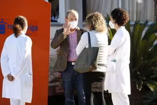 Pla tancat del primer tinent d'alcalde de Valls, Jordi Cartany, president del Consell d'Administració de Gestió Pius i també de la Fundació Vilaniu, conversant amb personal de la residncia Alt Camp. Imatge de l'11 de novembre del 2020. (Horitzontal) - Núria Torres (ACN)
