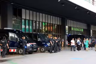 Barcelona.-Els accessos a les estacions de Sants i de Girona estan limitats a una única entrada amb motiu del segon aniversari de l'1-O. Tallar les vies de l'AVE ha estat una de les accions tradicionals dels CDR. Aquest cop, per, s'ha pres la decisió de restringir els accessos per evitar aquest tipus de protestes. Així, a Girona només es pot accedir per una entrada, i el mateix passa a Sants, on el transbordament amb el metro est tancat. Els usuaris han de sortir al carrer i després entrar a l'estació de tren per les portes centrals, que són les que estan obertes. Furgonetes de Mossos d'Esquadra protegeixen les estacions.