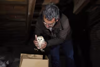 Sant Hilari Sacalm.-El campanar de lesglésia de Sant Hilari Sacalm (Selva) sha convertit en el nou niu per a una parella de cries dliba. Aquest dijous un bileg ha traslladat els dos animals fins al seu nou hbitat en una caixa niu. Lobjectiu és que aquests ocells creixin al municipi i es reintrodueixin dins de la flora i fauna de la zona. Daquesta manera, lAjuntament també vol aconseguir regular algunes plagues a partir del cicle natural de depredadors, en comptes dutilitzar pesticides o altres substncies químiques que danyen lentorn. El bileg que ha collocat les dues cries dliba, Jordi Baucells, ha assegurat que una família daquest tipus docells pot arribar a menjar-se uns 2.500 ratolins en un any.