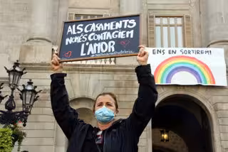 Barcelona.-El sector dels casaments s'ha concentrat aquest dilluns a la plaa Sant Jaume de Barcelona per protestar contra el tancament dels establiments de restauració i la impossibilitat de celebrar esdeveniments, com bodes o actes d'empresa. L'Associació d'Empreses de Gestió d'Esdeveniments i Casaments de Catalunya (AEGECat), ha afirmat que aquesta mesura és "desproporcionada" i "posa en perill" la supervivncia de moltes empreses del sector. De fet, l'entitat ha xifrat en 150 milions d'euros l'impacte provocat per les noves mesures des d'aquest cap de setmana fins a finals d'any.