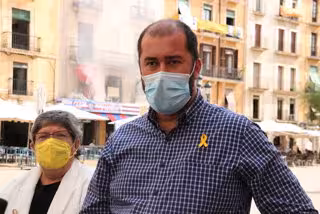 Pla mitj del portaveu municipal, Xavier Puig, en l'atenció als mitjans de comunicació per explicar que el sector de la restauració comenar a pagar tributs a partir de l'1 d'octubre. Imatge del 24 de setembre del 2020 (Horitzontal). - Mar Rovira (ACN)