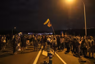 Tarragona.-Centenars de manifestants han tallat lautopista AP-7 aquest dilluns a la nit a Tarragona en el marc de les protestes contra la sentncia del Tribunal Suprem. Cap a dos quarts donze de la nit desenes de persones que havien participat en la manifestació del vespre i en el tall de lautovia A-7 han entrat a lautopista mitjanant el peatge de Tarragona, on no hi havia presncia policial. Un cop a la via rpida alguns manifestants han arrencat les tanques de protecció i les han collocat a mode de barrera en ambdues calades. Finalment, al cap duns tres quarts dhora han abandonat el tall, que ha ocasionat cues quilomtriques de vehicles en ambdós sentits.