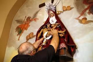 Berga.-Els Mossos d'Esquadra han lliurat a la comunitat la talla de Crist que quatre joves van sostreure el passat 24 de juny de la capella de la Pietat de Berga. Aquest dimecres, enmig de l'expectació generada entre alguns vens i devots del barri, s'ha collocat la pea al seu lloc, als braos de la verge. El sergent Xavier Armengol, cap de la unitat d'investigació de Berga, ha explicat que tres de les quatre persones que van perpetrar el robatori es van lliurar fa uns dies a la comissaria de Vilafranca del Peneds i van tornar al pea en bon estat després de la difusió que es va fer de les imatges de la cmera de seguretat de la capella. Tanmateix, la investigació continua oberta amb l'objectiu de localitzar el jove que falta i que també apareix al vídeo. La policia no descarta que hi hagi més persones implicades.