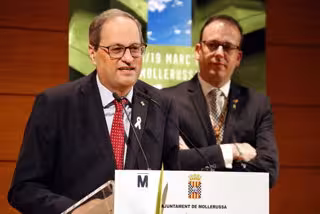 Mollerussa.-El president de la Generalitat, Quim Torra, ha dit aquest dissabte des de Mollerussa que Catalunya, com la Fira de Sant Josep, en aquests gairebé 150 anys, "ha viscut de tot: bons moments, moments durs i moments de repressió", ha dit, per que "sempre ha sabut seguir endavant". Torra ha inaugurat aquest dissabte la 147a edició de la Fira de Sant Josep demanant a tots els catalans "unpunt d'autoestima, de confiana i de fora en nosaltres mateixos" per defensar els drets i les llibertats de Catalunya. L'alcalde de la ciutat, Marc Solsona, ha comenat el seu discurs recordant que l'any passat ni Carles Puigdemont ni Meritxell Serret el van poder acompanyar en la inauguració de la fira i ha expressat el seu suport als "polítics a l'exili" i a tots els consellers i líders socials que estan sent "injustament" jutjats al Tribunal Suprem.