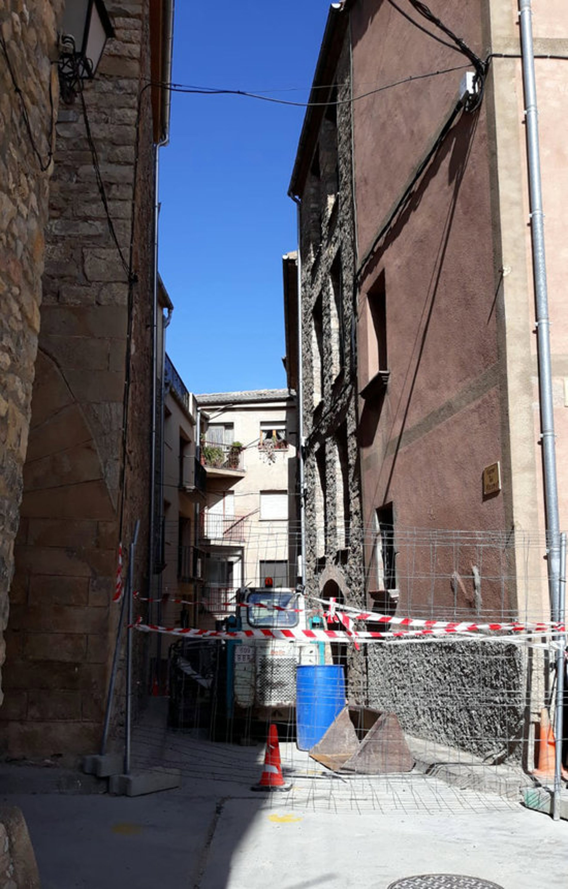 Pla general del carrer on s'han iniciat les obres d'ampliació del Museu dels dinosaures d'Isona el 29 de setembre del 2020. (vertical) - Cedida per l'Ajuntament d'Isona (ACN)