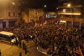 Manresa.-Unes 8.000 persones s'han concentrat aquest vespre a Manresa per mostrar el seu rebuig a la sentncia. Després de la lectura del manifest, a la plaa de Sant Domnec, on han rebutjat la resolució i han fet un clam a la reincidncia, els manifestants s'han dividit en dos grups i s'han dirigit cap a la Policia Nacional i la Gurdia Civil. Mentre que en el primer dels casos, la protesta s'ha desconvocat al cap d'una hora; a la Gurdia Civil encara dura. En aquest darrer cas, s'han produt petites picabaralles entre el cordó policial dels Mossos, que impedien als assistents arribar a la caserna, i els manifestants.