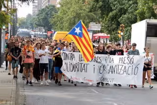 Lleida.-Uns 300 estudiants universitaris i de secundria s'han manifestat aquest migdia a Lleida per reivindicar l'1-O, coincidint amb el segon aniversari de la celebració del referndum. La marxa, que s'ha desenvolupat sense incidents, ha estat encapalada per dues pancartes amb les lemes "contra les porres i la presó, solidaritat i organització" i "si ens venen a buscar porta a porta, respondrem colze a colze". Els manifestats també han exigit la llibertat dels set membres dels CDR i dels líders independentistes empresonats. La mobilització ha sortit de la plaa Víctor Siurana, davant de l'edifici del Rectorat de la Universitat de Lleida, i ha finalitzat a la subdelegació del govern de l'Estat a la capital del Segri, on s'ha llegit un manifest.