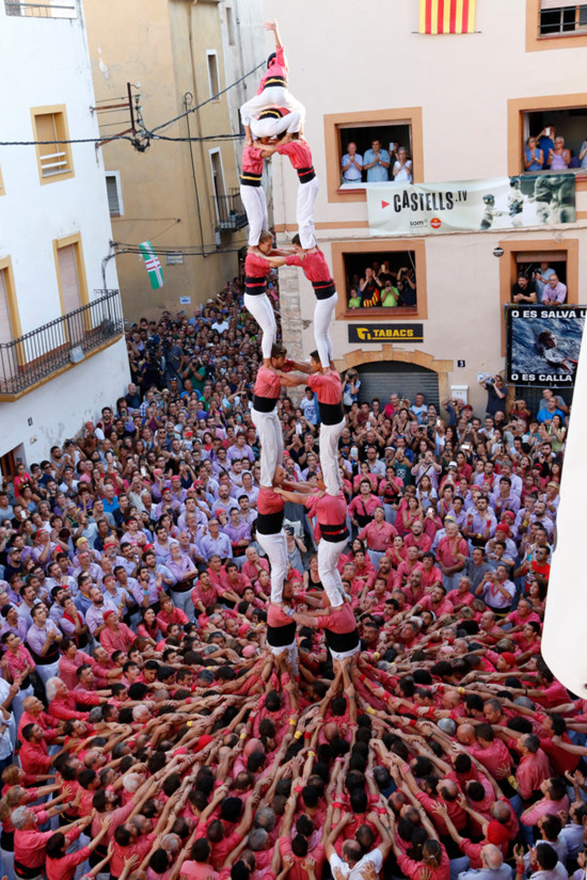 El Catllar.-La Colla Vella dels Xiquets de Valls ha brillat amb llum prpia en la diada del Catllar amb el primer 2 de 8 sense folre de la temporada, indit en aquesta plaa. Els rosats també han descarregat el 4 de 9 amb folre i el pilar, i el 3 de 9 amb folre, i han tancat la seva actuació amb un magnífic pilar de 8 amb folre i manilles que ha aconseguit descarregar -el primer que fan aquesta temporada. Són dos dels quatre gammes extra que shan vist aquest dissabte a la tarda al Catllar, en una de les places més petites i complicades per exhibir grans castells. Sesperava veure el 3 de 10 amb folre i manilles, per les colles han optat per reservar-lo per a futures trobades. De fet, els Castellers de Vilafranca han rebaixat pretensions fins al punt que la Jove de Tarragona ha rubricat millor actuació, coronant el 5 de 9 amb folre.