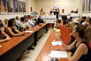 Un grup de concentrats ha ocupat el ple amb pancartes en contra del pacte "amb el 155"