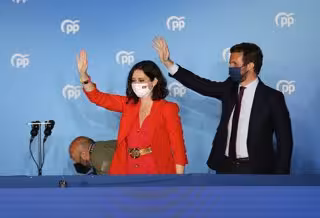 "Espanya és una altra cosa, senyor Sánchez. Espanya comena a Madrid. Quan diem que Madrid és Espanya és perqu aquí ve el millor de cada racó a viure en pau i en llibertat", ha llanat, visiblement emocionada, des de la balconada installada a la seu del PP, al carrer Gnova, acompanyada del president del partit, Pablo Casado, i davant centenars de persones.