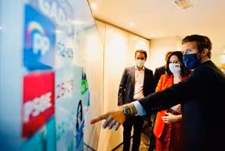 De fet, la direcció del PP ha difós una foto en la qual es veu a Casado i Ayuso seguint en una pantalla el recompte dels resultats electorals, acompanyats pel secretari general del PP, Teodoro García Egea.