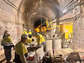També s'ha completat el rebaix de la cota de la plataforma ferroviria a l'exterior del túnel i s'han iniciat les perforacions de pilons de fonamentació de pantalles acústiques i dels pals de catenria.