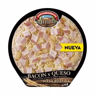 Casa Tarradellas ha llançat al mercat la seva 'Pizza Bacó i Formatge amb massa rústica' amb una nova recepta per a la massa, amb la qual s'ha aconseguit una textura semblant a la de fogassa de pa.
