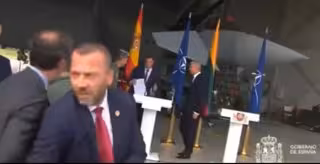 Els dos mandataris s'estaven adreçant als mitjans precisament davant d'un dels dos caces Eurofighters de l'Ala 14 que han sortit minuts després a identificar els avions russos que s'han detectat, tot i que aquesta mena d'avisos es produeixen sovint, segons fonts del destacament.