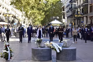 L'acte a La Rambla de Barcelona també ha consistit en una ofrena floral, en línia amb el de fa un any, per ara respectant les mesures de seguretat imposades per l'emergncia sanitria del coronavirus, amb els assistents protegits amb mascaretes.