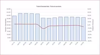 Al novembre, el total d'assalariats era de 36.938 persones, la qual cosa representa una variació del -5,7% respecte al mateix mes de l'any anterior; la mitjana d'assalariats d'acord amb les dades acumulades de gener a novembre és de 38.464, la qual cosa suposa un -2,2% comparat amb el mateix període anterior.