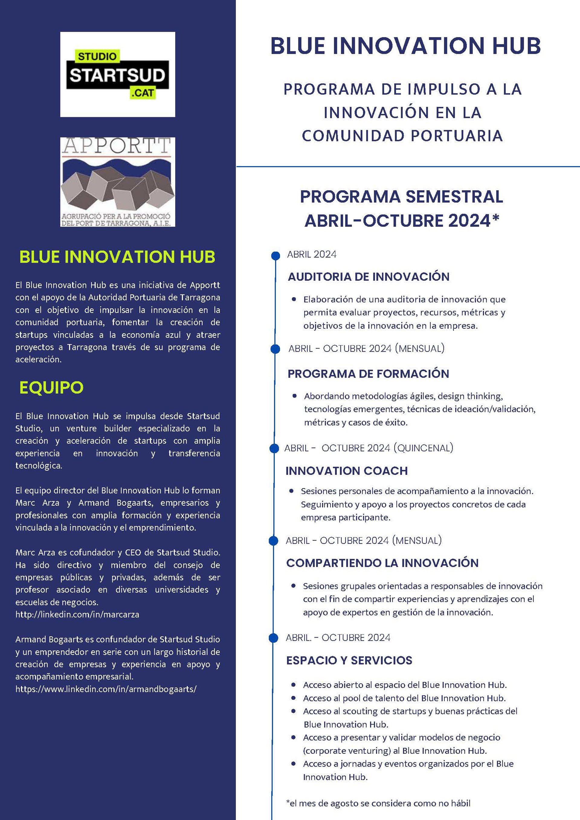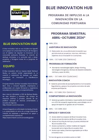Aquest programa s'emmarca en el Blue Innovation Hub de l'Autoritat Porturia de Tarragona (APT), una iniciativa per crear un ecosistema de generació d'empreses innovadores al voltant del port.