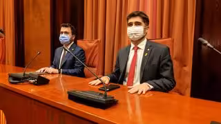 El president de la Generalitat, Pere Aragons, i el vicepresident del Govern, Jordi Puigneró, s'han reunit aquest dimarts amb els diputats d'ERC i Junts abans del debat de política general (DPG).