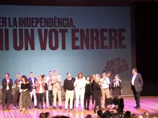 També han parlat diputats de JxCat al Parlament, i la líder del partit a l'Ajuntament de Barcelona, Elsa Artadi, i altres crrecs electes, que han fet una intervenció conjunta que ha acabat entre aplaudiments i crits d''Independncia' i una part del públic ha desplegat el cartell 'Plantem cara'.