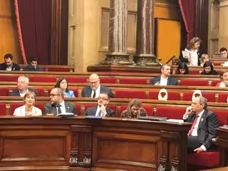 La diputada popular li ha preguntat per qüestions de seguretat i ha acabat la seva intervenció consultant al conseller si compliria una eventual ordre de la Junta Electoral Central i ordenaria als Mossos d'Esquadra retirar els llaos dels edificis de la Generalitat, per el conseller no ha contestat la pregunta.