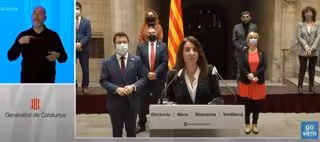 Així ho ha manifestat en una declaració institucional al Palau de la Generalitat, que s'ha fet de manera telemàtica i sense preguntes, acompanyada del vicepresident del Govern, Pere Aragonès, i el conseller d'Acció Exterior, Relacions Institucionals i Transparència, Bernat Solé, que el TSJC també ha condemnat aquest mateix dijous per un delicte de desobediència greu durant l'1-O a un any d'inhabilitació i a una multa de 16.800 euros.