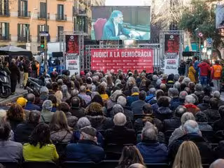 L'entitat ha installat una pantalla al carrer Diputació amb Pau Claris per poder seguir l'interrogatori i ha tallat el carrer amb desenes de cadires perqu els ciutadans puguin veure la compareixena de Cuixart.