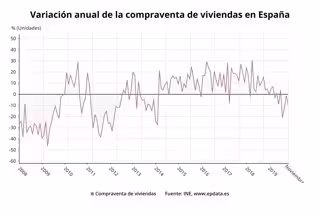 Amb aquest descens, la compravenda d'habitatges encadena quatre mesos consecutius de taxes interanuals negatives després que l'agost del 2019 es desplomés un 21%, el setembre un 12% i l'octubre un 1,5%.